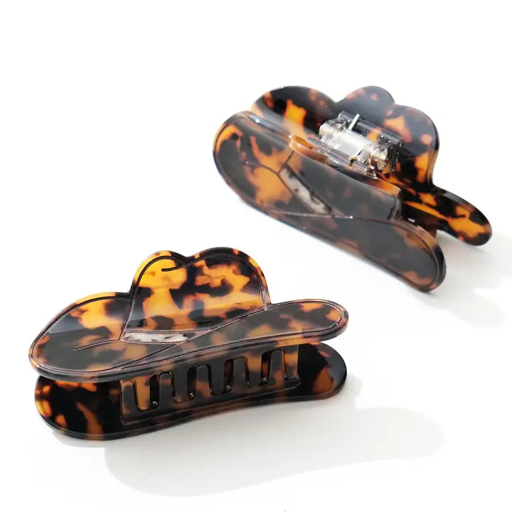 Our cowboy hat claw is perfect for our cowgirls! Featuring hand painted details and a tortoiseshell pattern. Made with eco-friendly material that is both durable and comfortable.