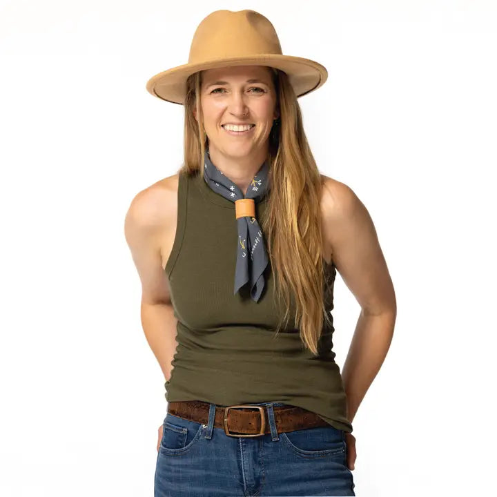 Functional, giftable, and easy to style — a bandana and scarf slide designed to elevate everyday accessories. Our arched slide is a versatile bandana slide, scarf slide, and bolo-style accessory that holds bandanas and scarves securely in place without the need for tying. Inspired by traditional western bolo slides, this small accessory adds structure, polish, and ease to styling. Handcrafted in North Carolina from natural leather with hand-finished details, offering a warm, textured look that pairs well with our heritage bandanas.